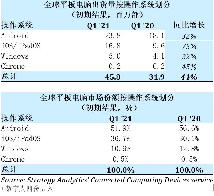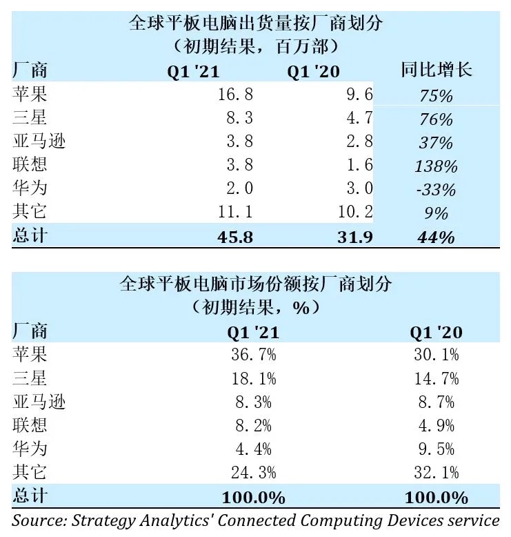 Strategy Analytics:居家办公趋势进一步巩固,平板电脑市场增长创八年新高