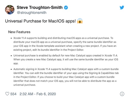 开发者 Steve Troughton-Smith 发推称