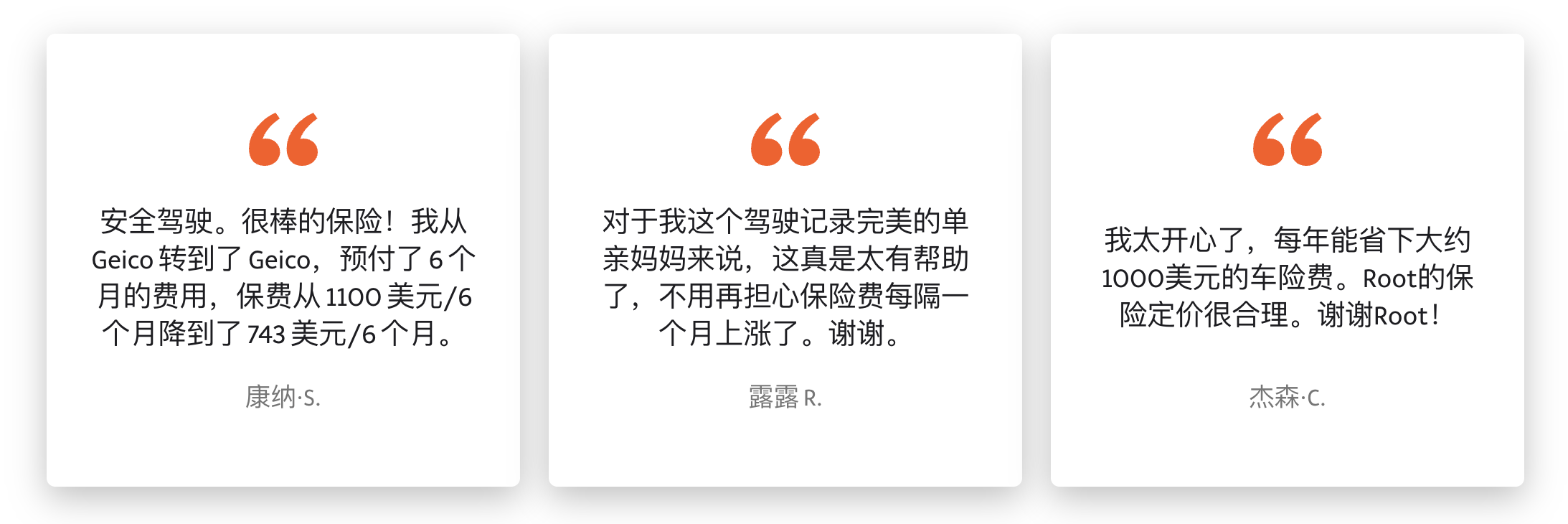 官网中要点展现了如下谈论:“我太高兴了,每年能省下大约1000美元的车险费。Root的稳妥定价很合理。”“很棒的稳妥!保费从1100美元/6个月降到了743美元/6个月。”