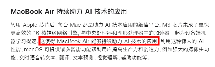 苹果:M3 MacBook Air 是“用于 AI 的全球最佳消费级笔记本电脑”